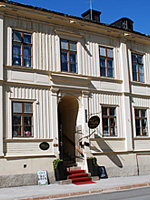 Annelie Burman från FamiljeJuristerna till Berggrenska Gården. Mottagningen ligger i den östra träflygelbyggnaden en trappa upp.